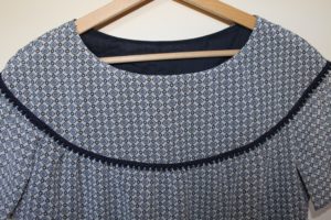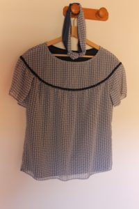 Tout en légèreté et transparence, ce haut est doublé en voile de coton et un passepoil un peu fantaisie cache la couture de l’empiècement.