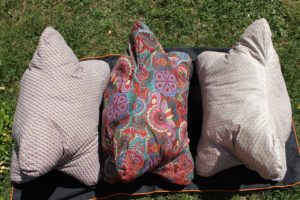 Des coussins de la grandeur d’un petit traversin, idéal pour faire la sieste sur une terrasse ou à mettre sur un tapis, dans un salon.